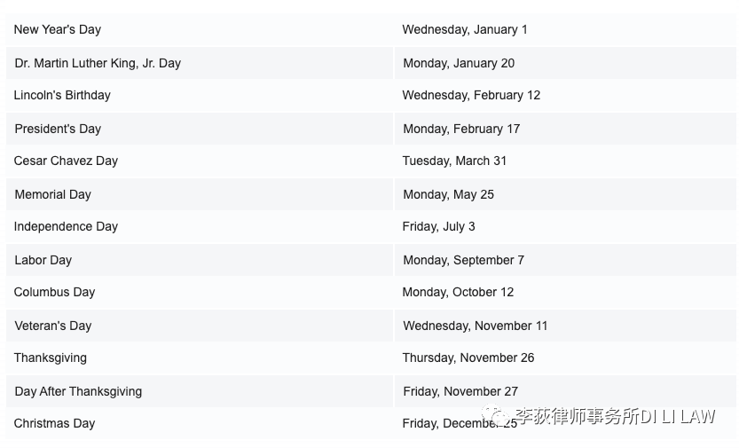 但新的法律AB2343规定,3天通知送达给房客之后,要从通知给出的下一日起算3个法院日(court days),而非之前的“自然日”。“法院日”是指法院的工作日,不含任何的司法节假日(judicial holidays)和周末。按照这个新算法,但凡法院不工作的日子都不可以算进去。